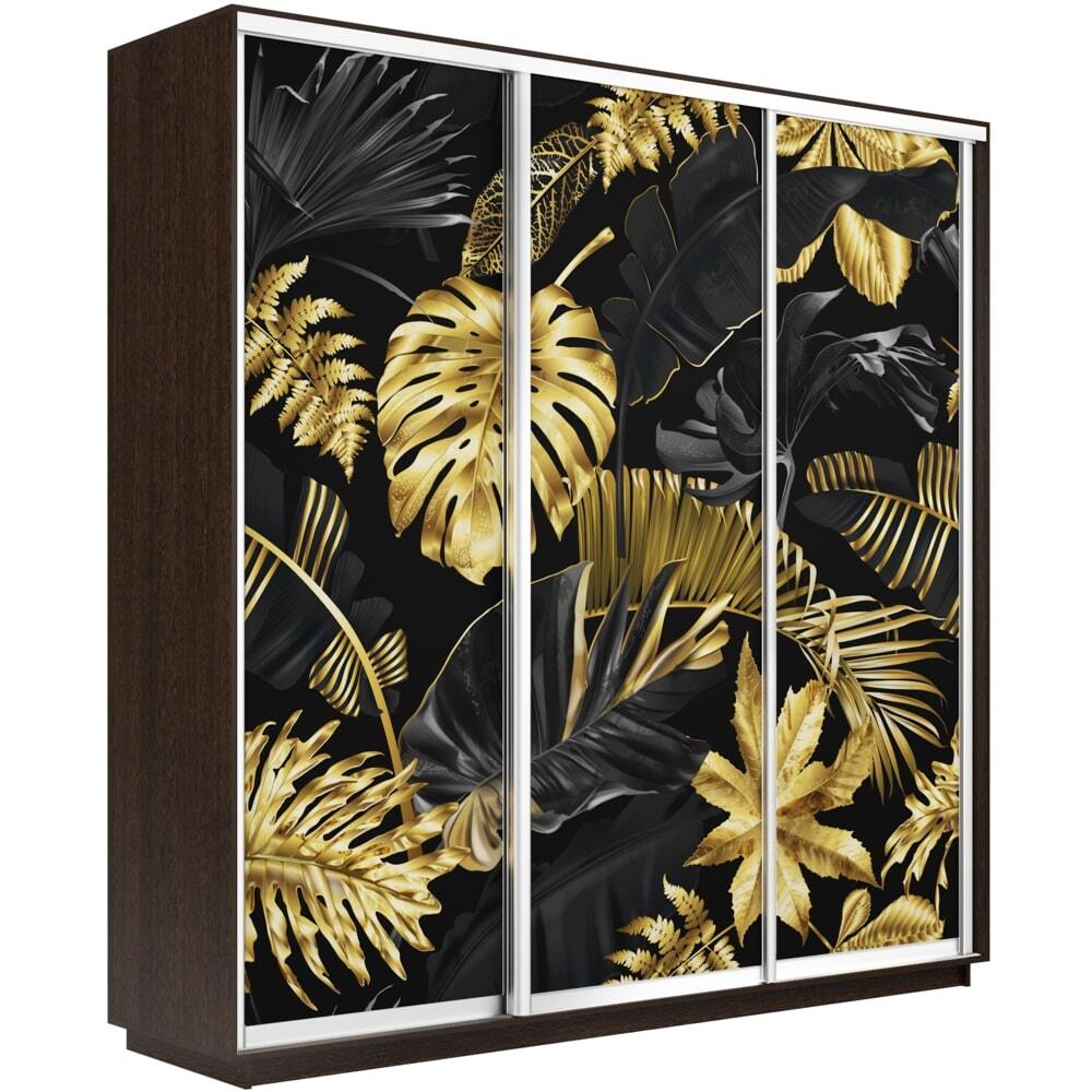 Шкаф-купе Фотопечать 3дв. Листья золото, 180х60х220, Венге