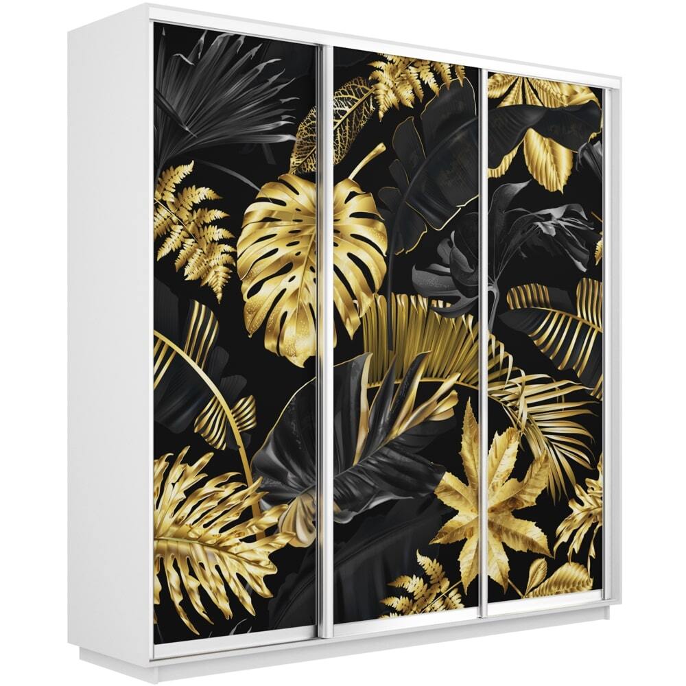 Шкаф-купе Фотопечать 3дв. Листья золото, 180х60х240, Белый снег