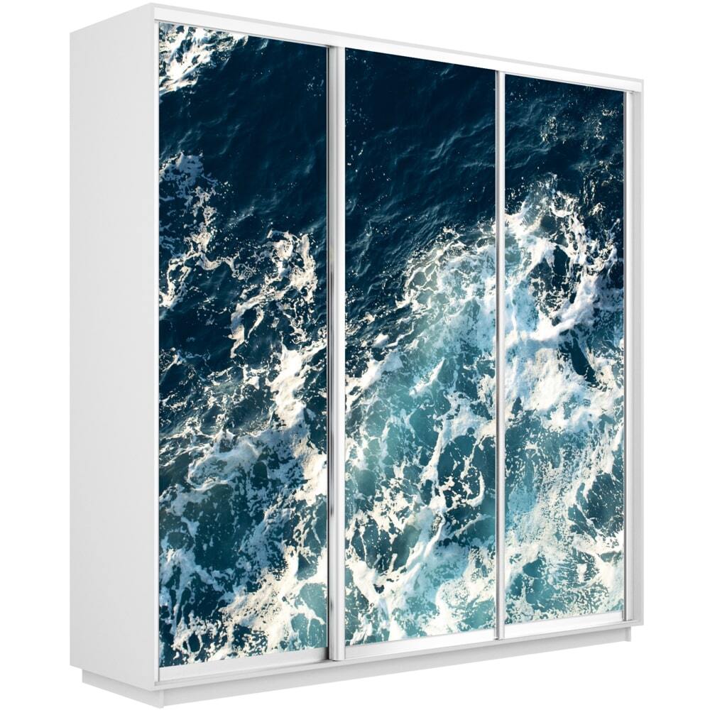 Шкаф-купе Фотопечать 3дв. Морские волны, 180х45х220, Белый снег