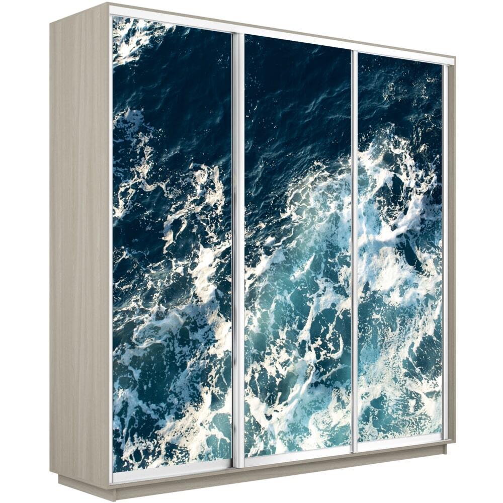 Шкаф-купе Фотопечать 3дв. Морские волны, 180х45х220, Ясень шимо светлый