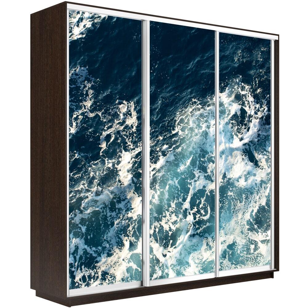 Шкаф-купе Фотопечать 3дв. Морские волны, 180х45х240, Венге