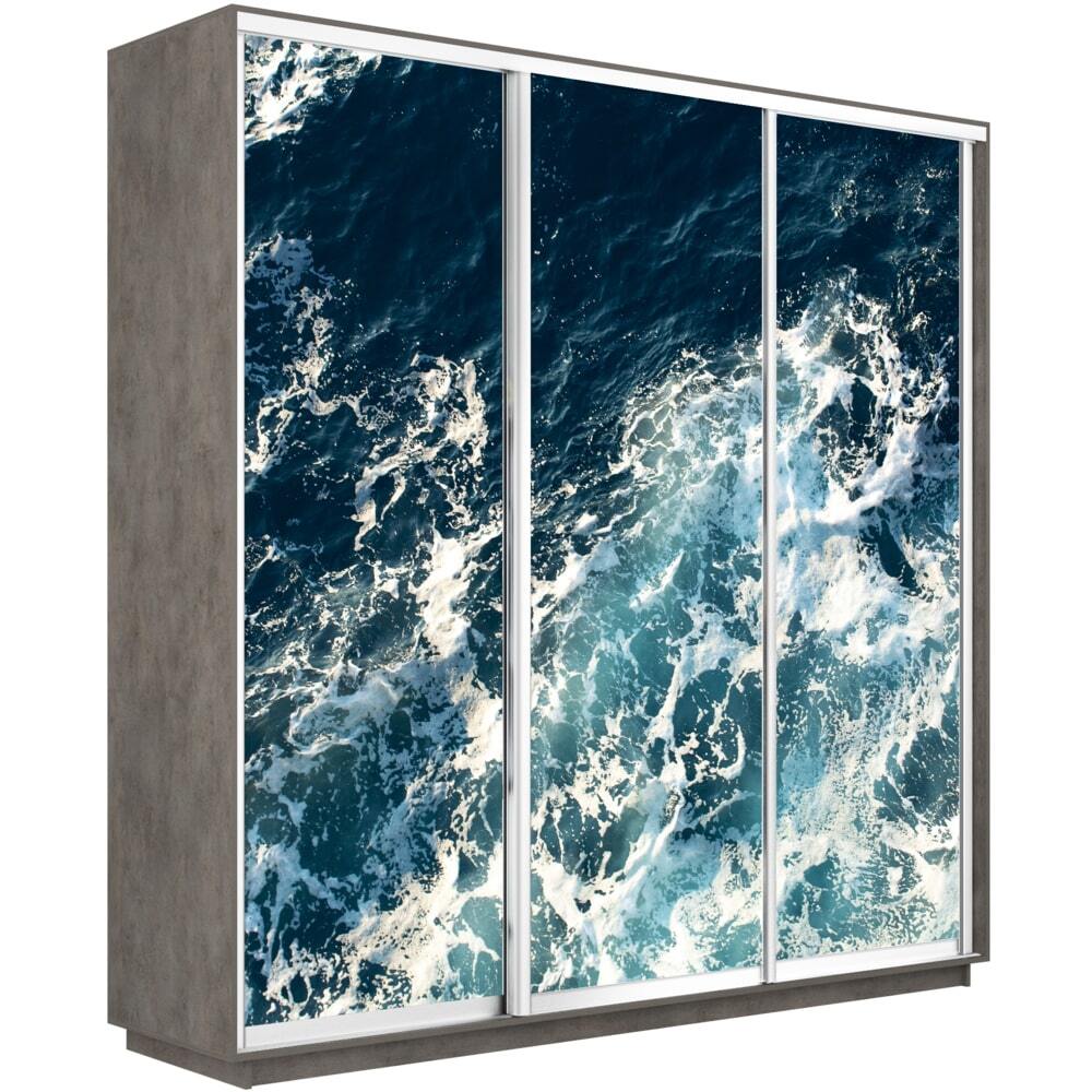 Шкаф-купе Фотопечать 3дв. Морские волны, 180х60х240, Бетон
