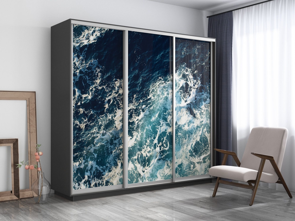 Шкаф-купе Фотопечать 3дв. Морские волны, 180х60х240, Серый диамант