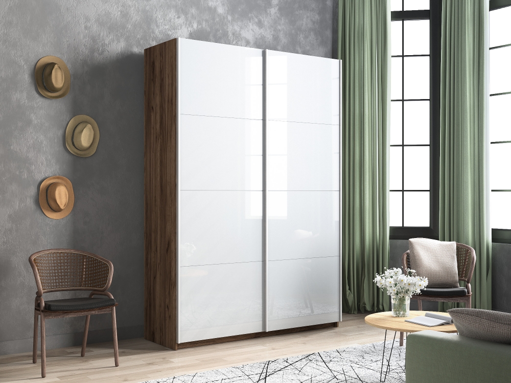 Шкаф-купе Прайм, 2дв. Белый Глянец/доводчики, 120х57х230, Крафт табачный