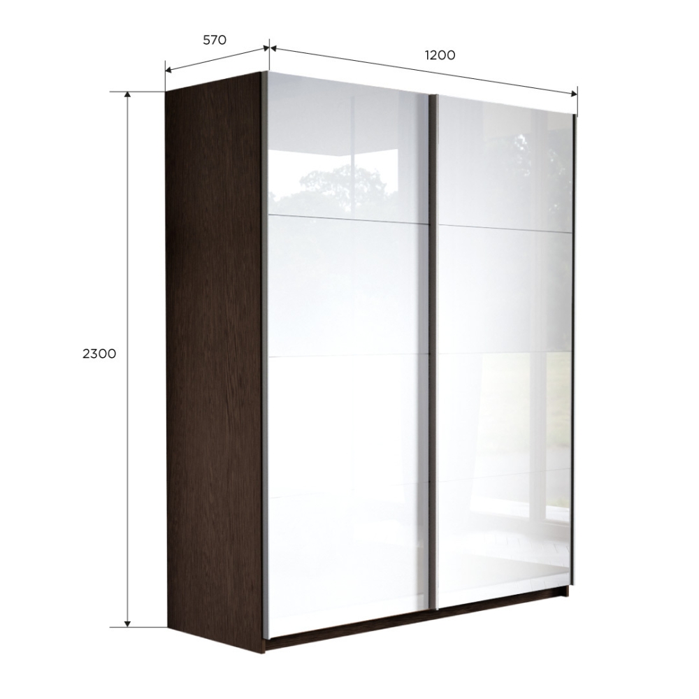 Шкаф-купе Прайм, 2дв. Белый Глянец/доводчики, 120х57х230, Венге