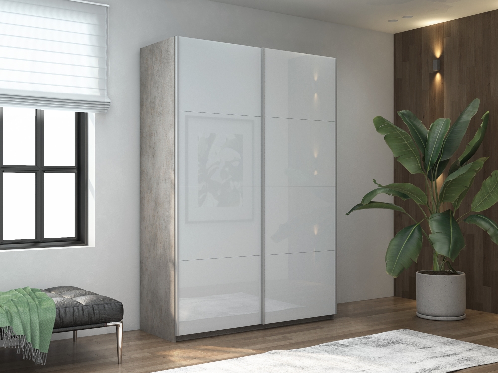 Шкаф-купе Прайм, 2дв. Белый Глянец/доводчики, 140х57х230, Бетон