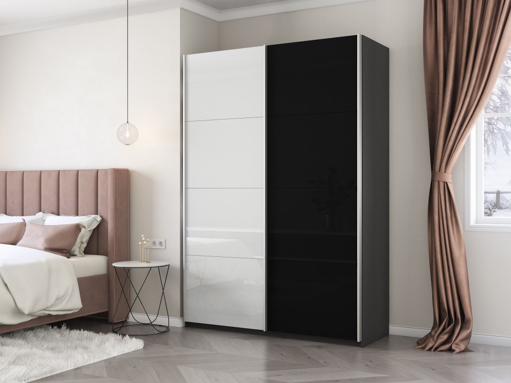 Шкаф-купе Прайм, 2дв. Белый Глянец/Стекло черное/доводчики, 120х57х230, Серый диамант