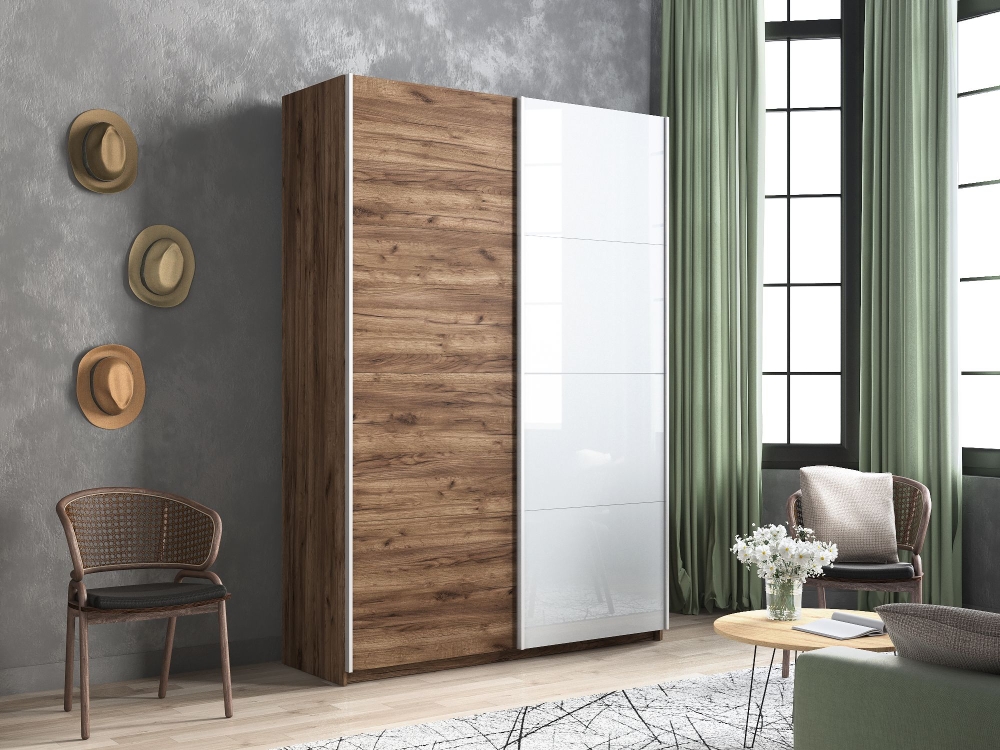 Шкаф-купе Прайм, 2дв. ДСП/Белый Глянец/доводчики, 140х57х230, Крафт табачный