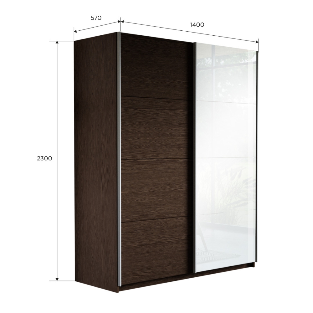Шкаф-купе Прайм, 2дв. ДСП/Белый Глянец/доводчики, 140х57х230, Венге