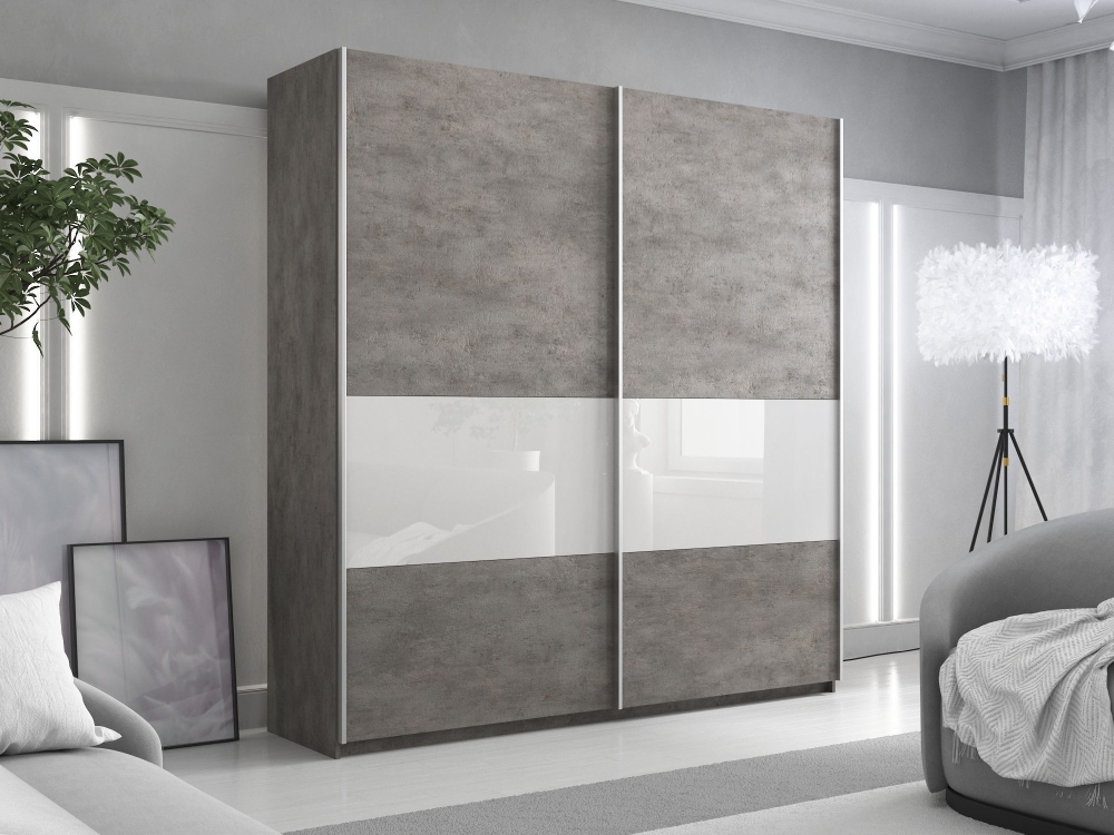 Шкаф-купе Прайм, 2дв. ДСП/Белый Глянец/доводчики, 160х57х230, бетон стекло белое
