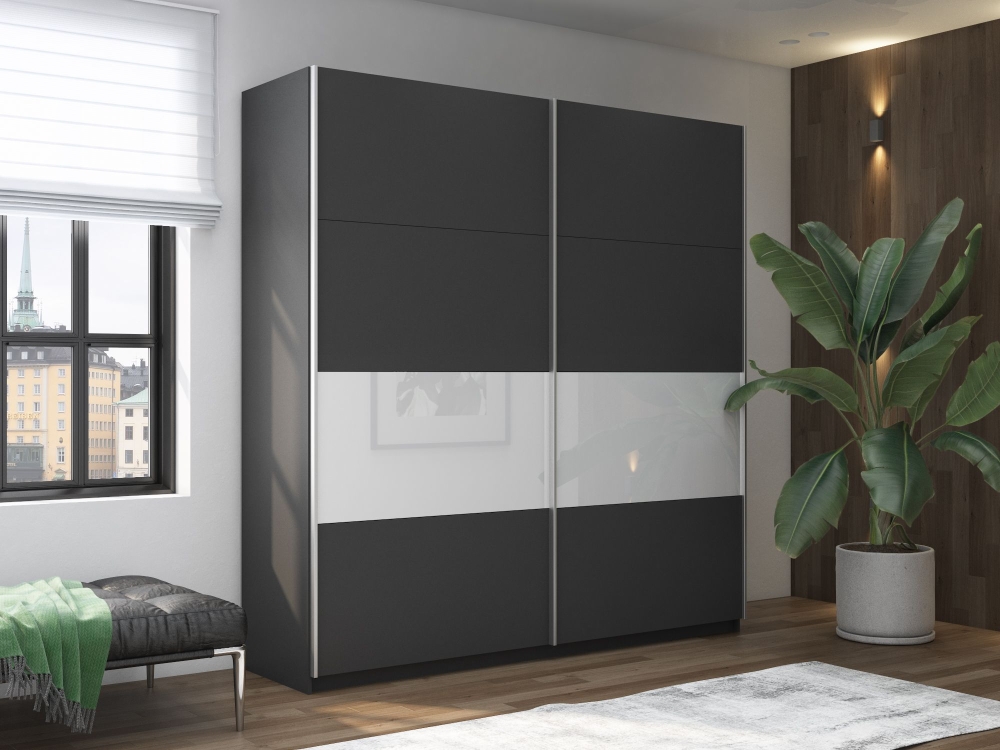 Шкаф-купе Прайм, 2дв. ДСП/Белый Глянец/доводчики, 160х57х230, Серый диамант стекло белое