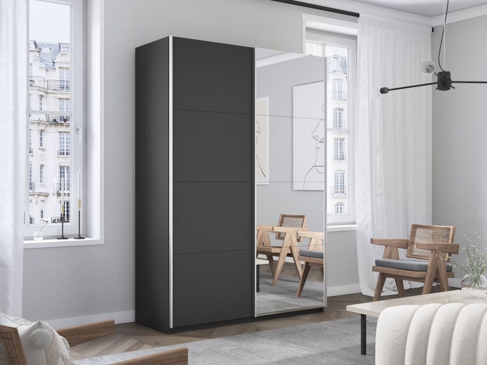 Шкаф-купе Прайм, 2дв. ДСП/Зеркало/доводчики, 140х57х230, Серый диамант