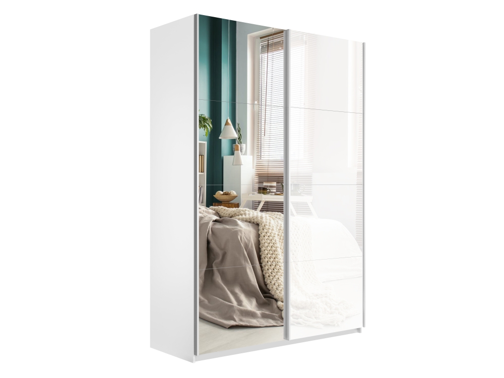 Шкаф-купе Прайм, 2дв. Зеркало/Белый Глянец/доводчики, 120х57х230, Белый снег