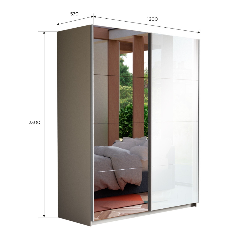 Материал корпуса: ЛДСПМатериал фасада: Зеркало/Стекло белоеРазмеры: В 2300 Г 570 Ш 1200ВНИМАНИЕ! Минимальные размеры помещения для сборки и установки шкафа-купе серии "Прайм": /20 см по высоте, /5 см по ширине.*Доводчики на закрывание входят в комплект.Серия «Прайм» – это шкафы-купе с эстетичным и изысканным внешним видом, который достигается благодаря применению навесной системы крепления дверей-купе Hettich Top Line M со скрытым верхним ходовым профилем, данная система обеспечивает плавный ход фасадов. Каждая дверь поделена на 4 секции, которые можно устанавливать в произвольном порядке, создавая каждый раз новый дизайн фасада. В шкафу-купе «Прайм» используется высококачественная фурнитура немецкого концерна Hettich, что обеспечивает многолетнюю безупречную работу изделия.Доступна услуга сборки. Все подробности по тарифам и срокам уточнять у продавца.