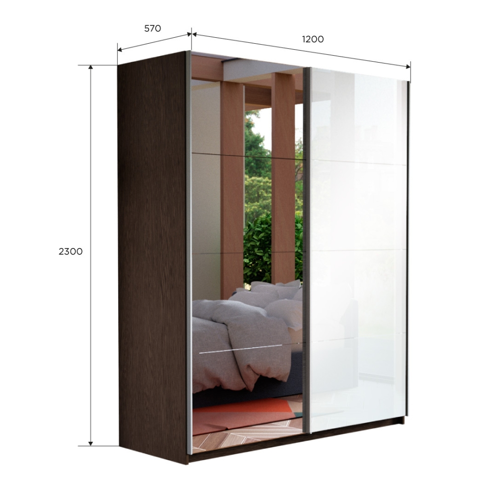 Шкаф-купе Прайм, 2дв. Зеркало/Белый Глянец/доводчики, 120х57х230, Венге