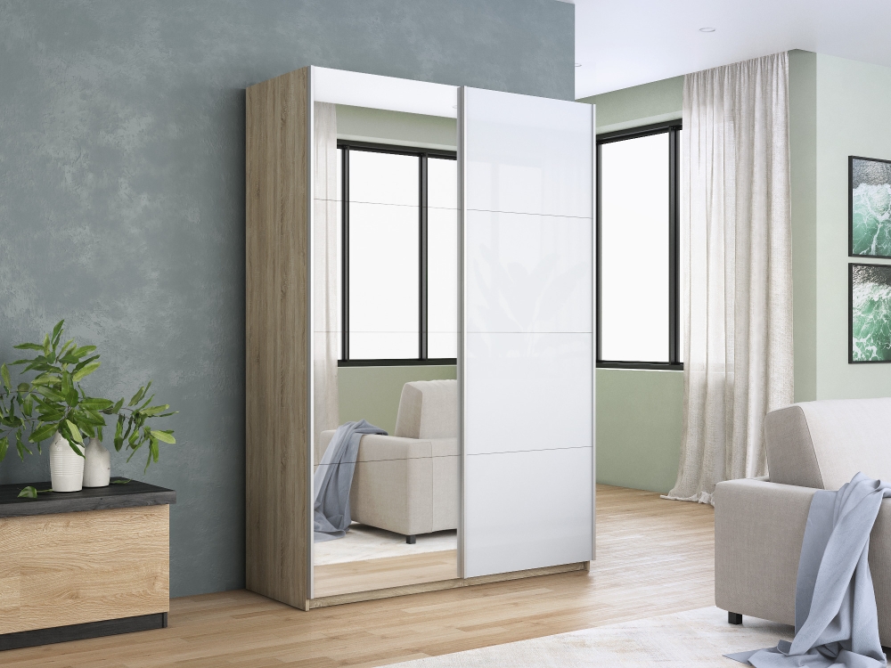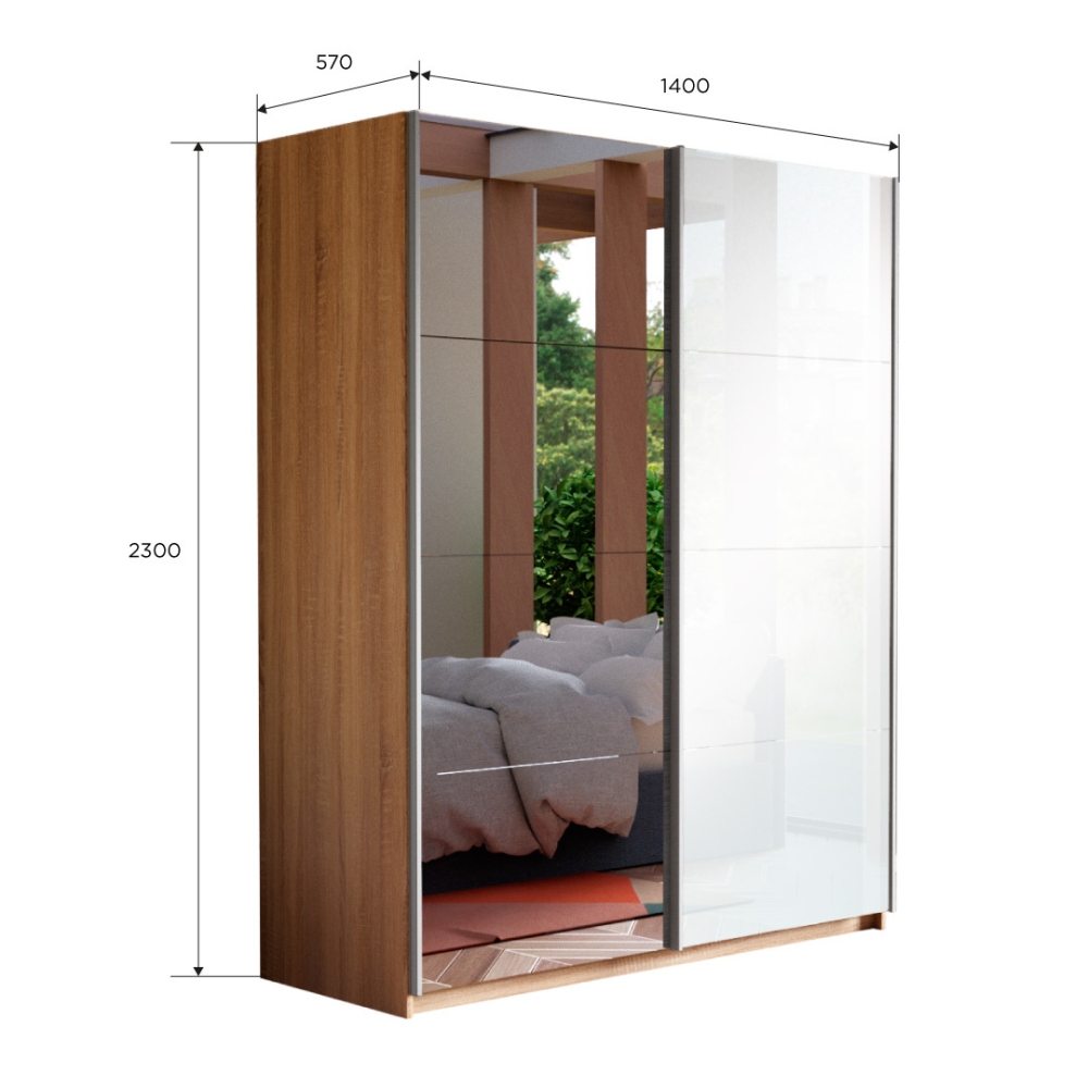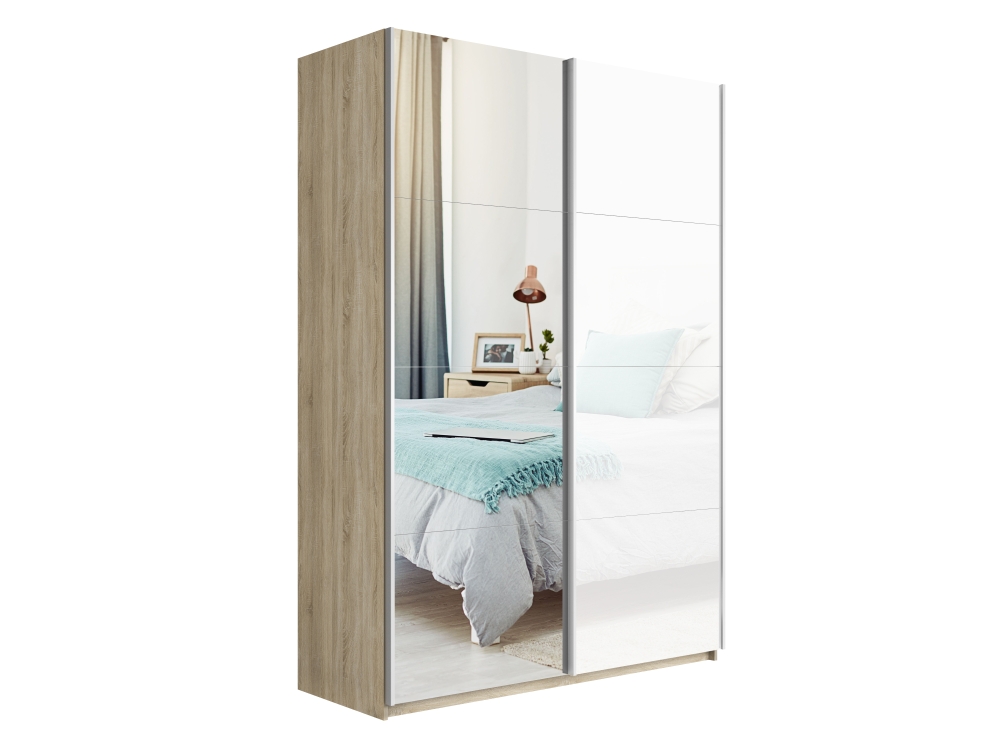Шкаф-купе Прайм, 2дв. Зеркало/Белый Глянец/доводчики, 140х57х230, Сонома