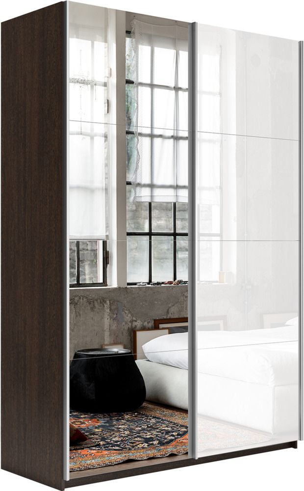 Шкаф-купе Прайм, 2дв. Зеркало/Белый Глянец/доводчики, 160х57х230, Венге