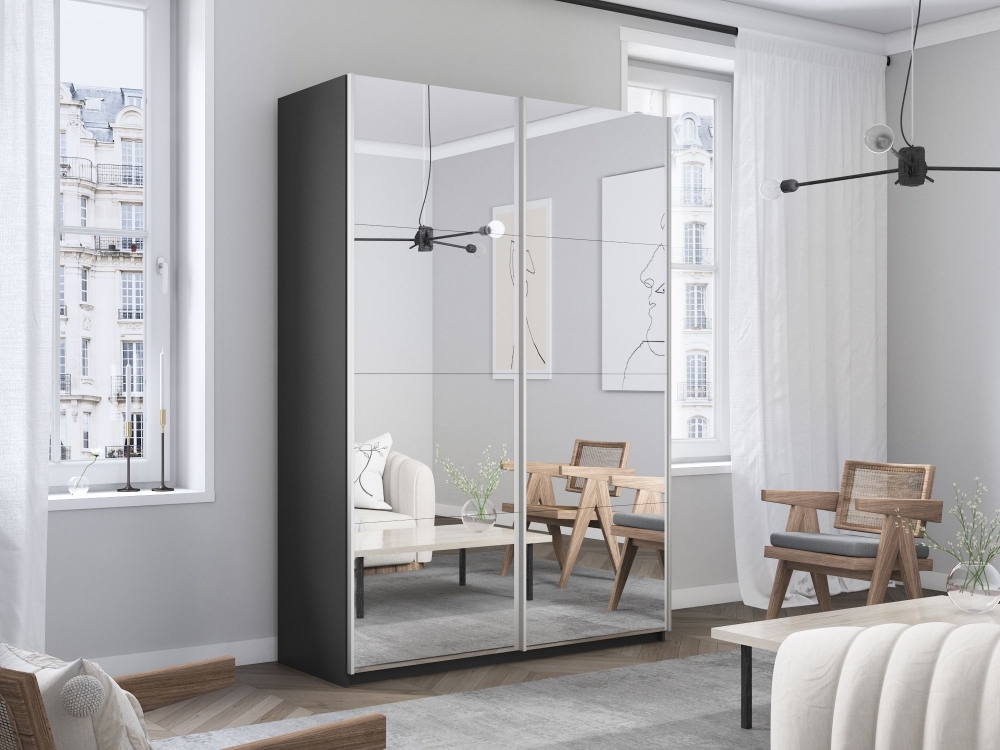 Шкаф-купе Прайм, 2дв.-Зеркало/доводчики, 140х57х230, Серый диамант