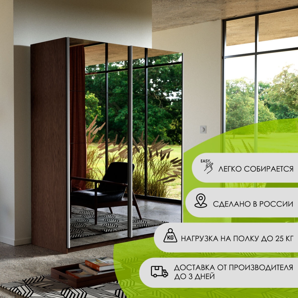 Шкаф-купе Прайм, 2дв.-Зеркало/доводчики, 140х57х230, Венге