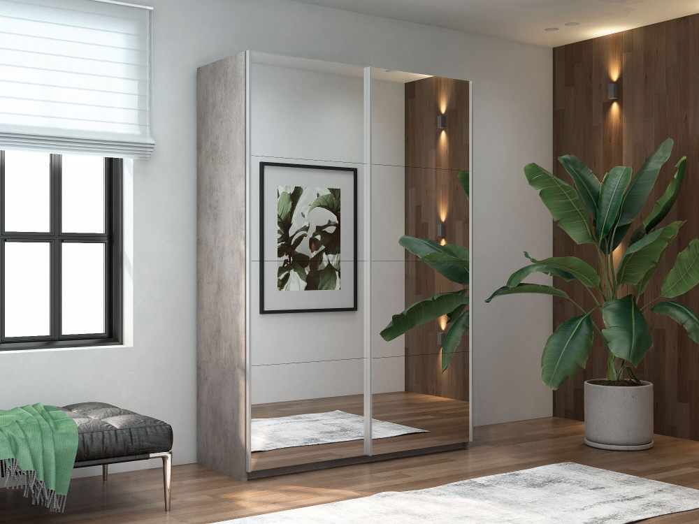 Шкаф-купе Прайм, 2дв.-Зеркало/доводчики, 160х57х230, Бетон