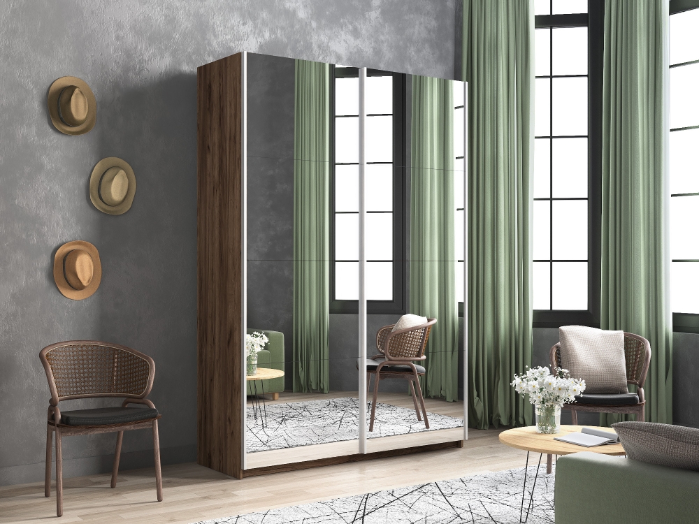 Шкаф-купе Прайм, 2дв.-Зеркало/доводчики, 160х57х230, Крафт табачный