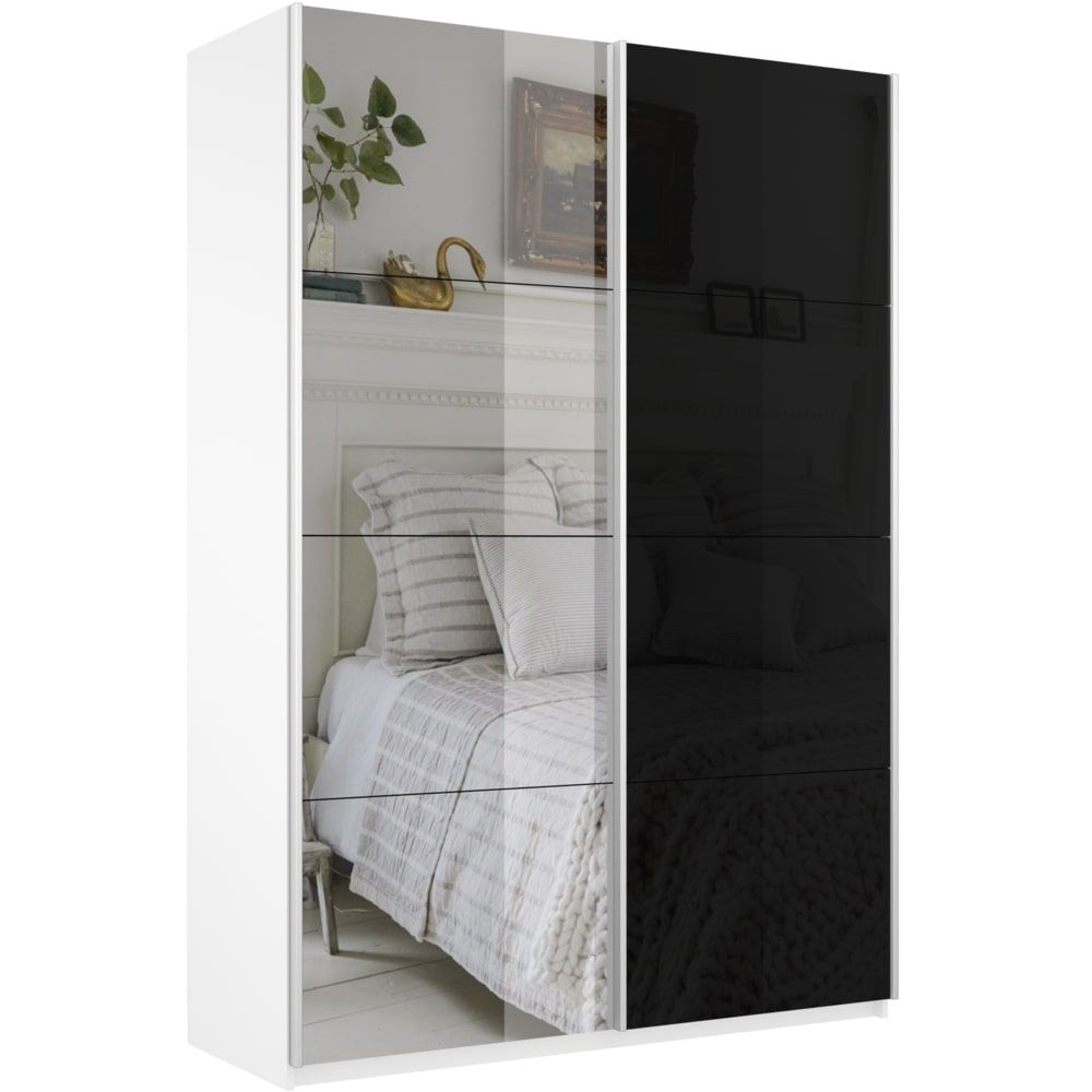 Шкаф-купе Прайм, 2дв. Зеркало/Стекло черное/доводчики, 120х57х230, Белый снег
