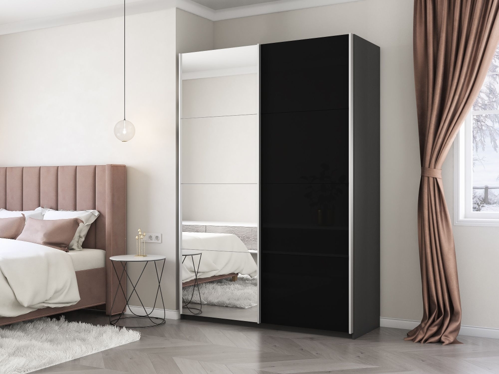 Шкаф-купе Прайм, 2дв. Зеркало/Стекло черное/доводчики, 120х57х230, Серый диамант
