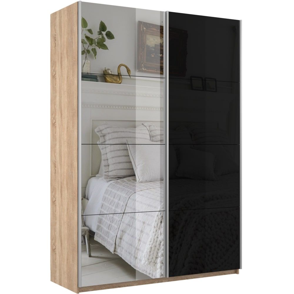 Шкаф-купе Прайм, 2дв. Зеркало/Стекло черное/доводчики, 140х57х230, Сонома