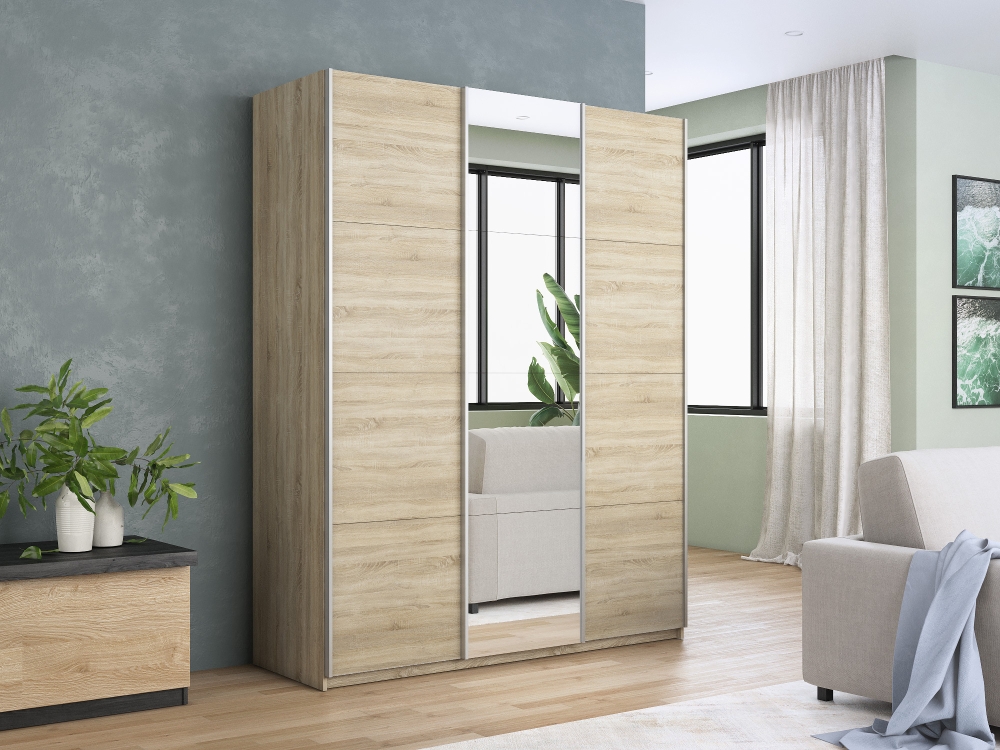 Шкаф-купе Прайм, 3дв. ДСП/Зеркало/ДСП/доводчики, 180х57х230, Сонома