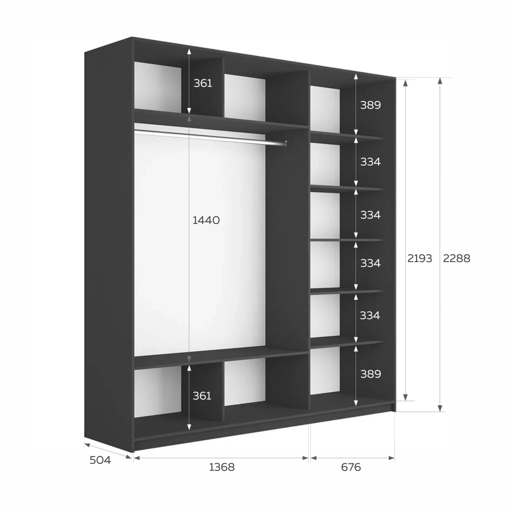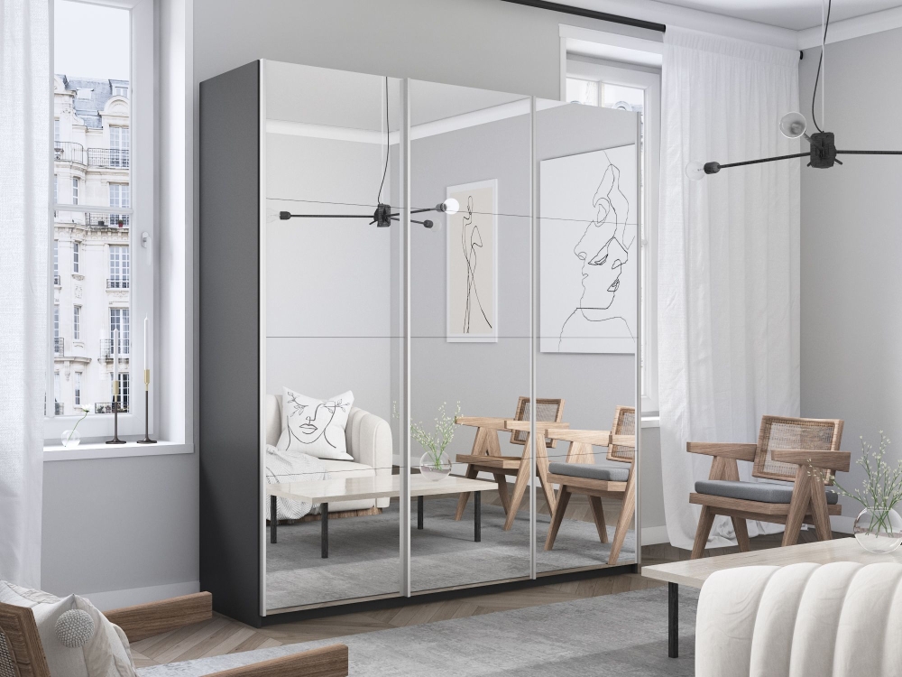 Шкаф-купе Прайм 3дв.-Зеркало/доводчики, 210х57х230, Серый диамант