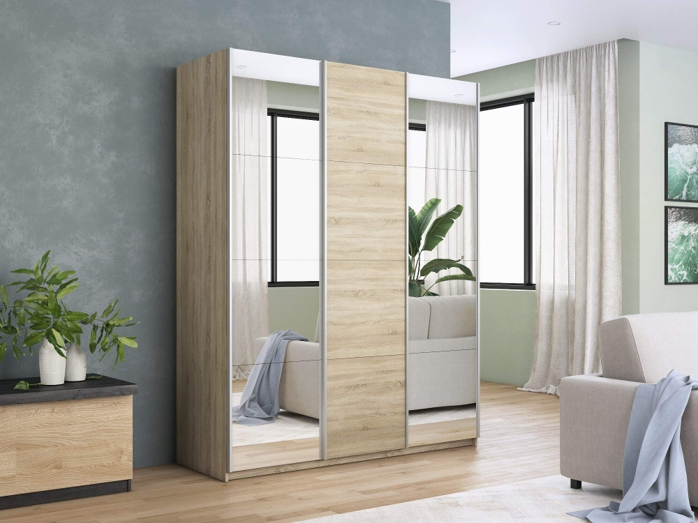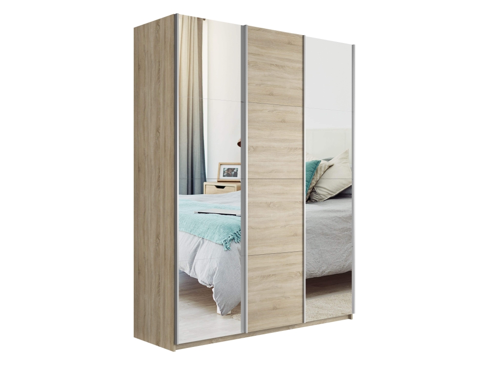 Шкаф-купе Прайм, 3дв. Зеркало/ДСП/Зеркало/доводчики, 180х57х230, Сонома