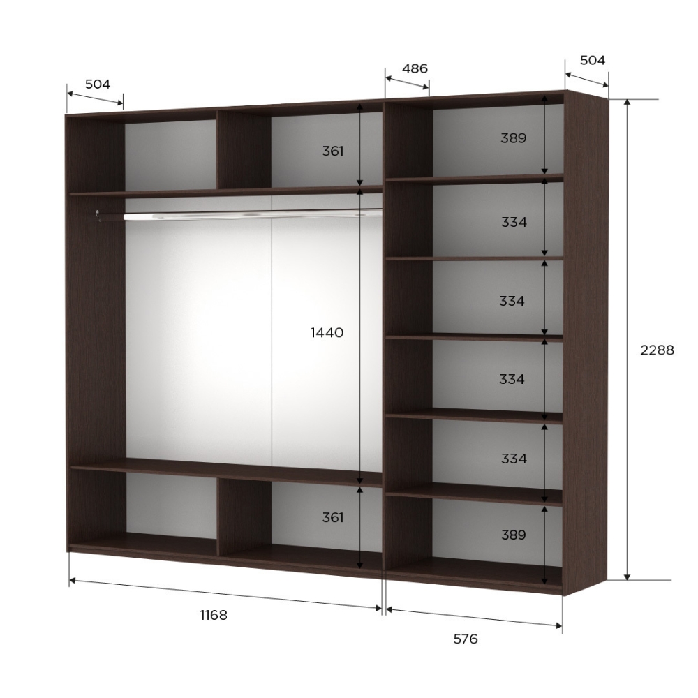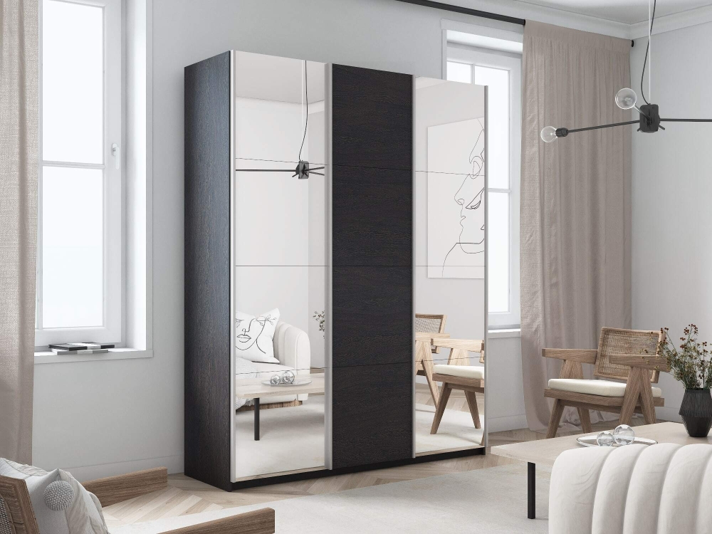 Шкаф-купе Прайм, 3дв. Зеркало/ДСП/Зеркало/доводчики, 180х57х230, Венге