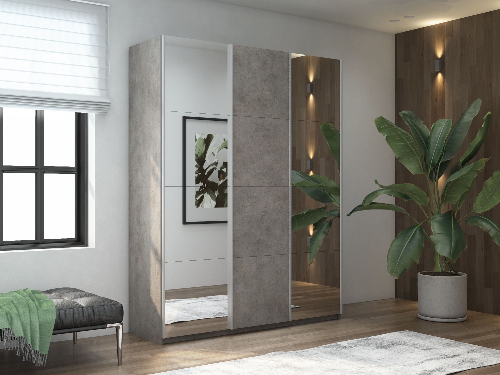 Шкаф-купе Прайм, 3дв. Зеркало/ДСП/Зеркало/доводчики, 210х57х230, Бетон