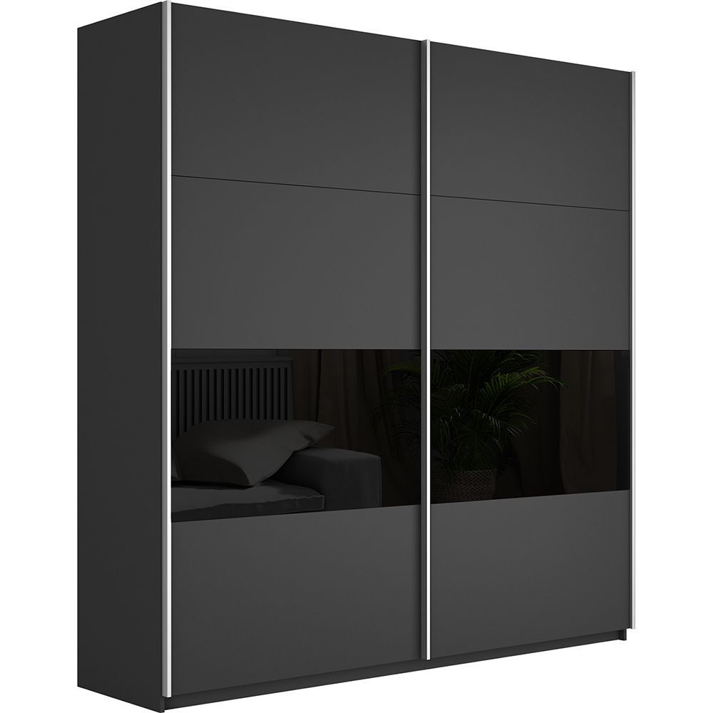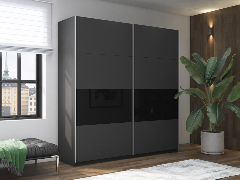 Шкаф-купе Широкий Прайм 2дв. ДСП/Стекло черное/доводчики, 220х57х230, Серый диамант стекло черное