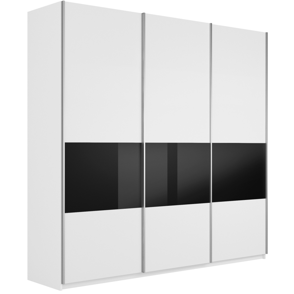 Шкаф-купе Широкий Прайм 3дв. ДСП/Стекло черное/доводчики, 240х57х230, белый стекло черное