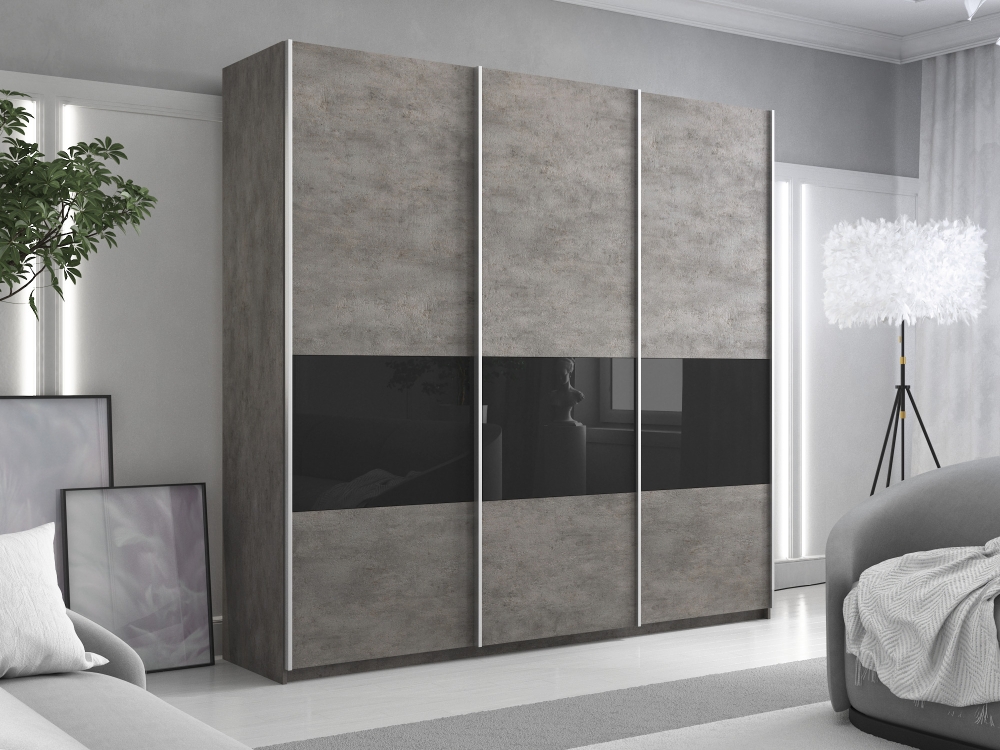 Шкаф-купе Широкий Прайм 3дв. ДСП/Стекло черное/доводчики, 240х57х230, бетон стекло черное