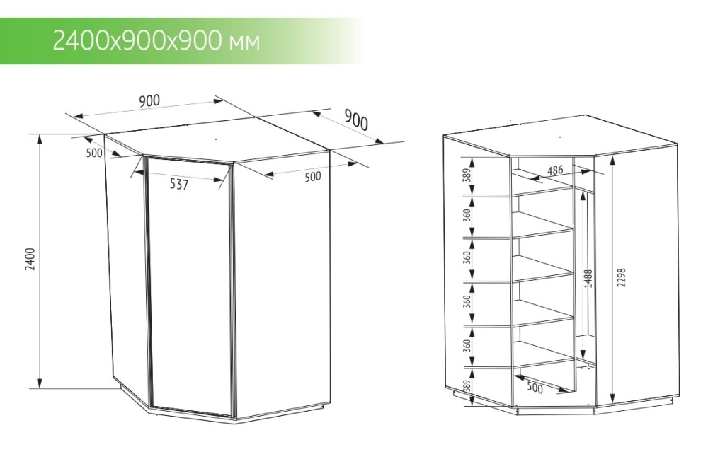 Шкаф распашной Распашной Угловой Экспресс 90х90х240 см