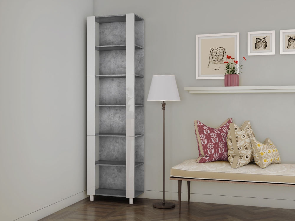 Стеллаж модульный Мебельная компания Е1 Универсальный Белое стекло 35х44х240, Бетон