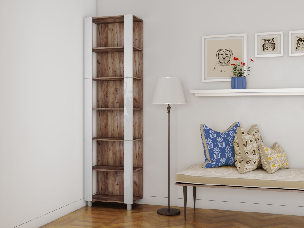 Стеллаж модульный Мебельная компания Е1 Универсальный Белое стекло 35х60х220, Дуб табачный