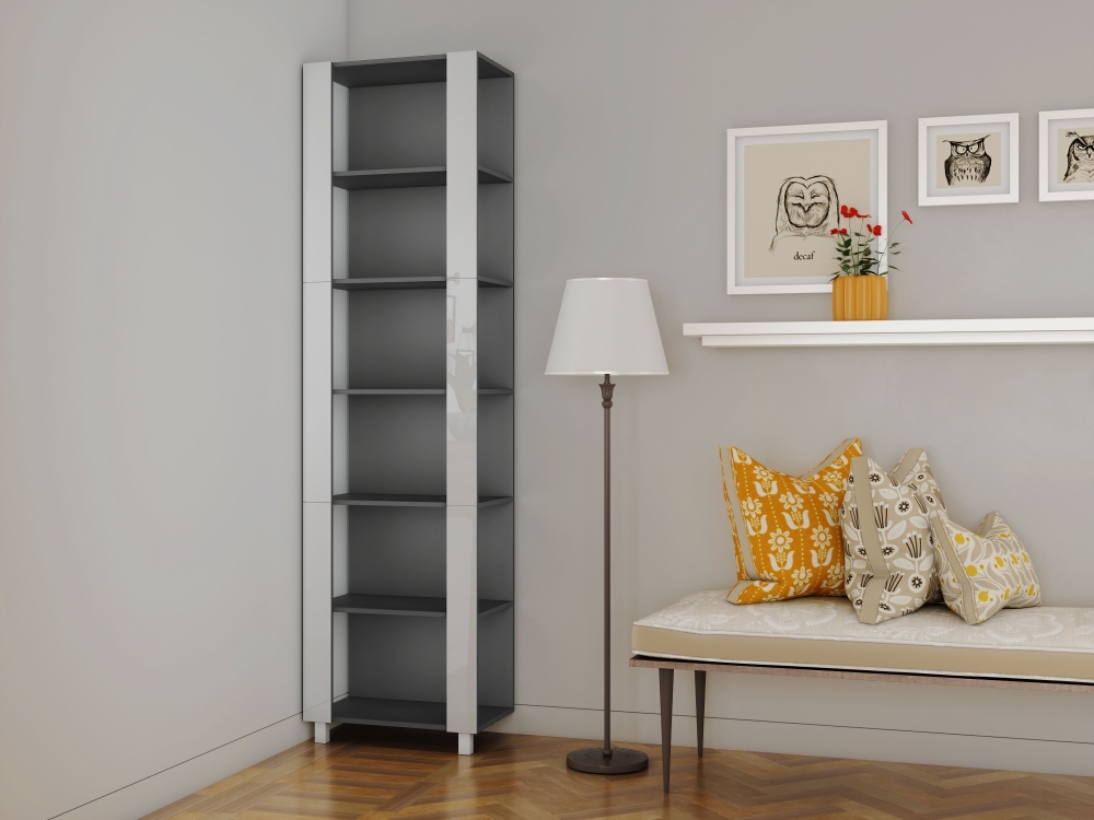 Стеллаж модульный Мебельная компания Е1 Универсальный Белое стекло 35х60х220, Серый диамант