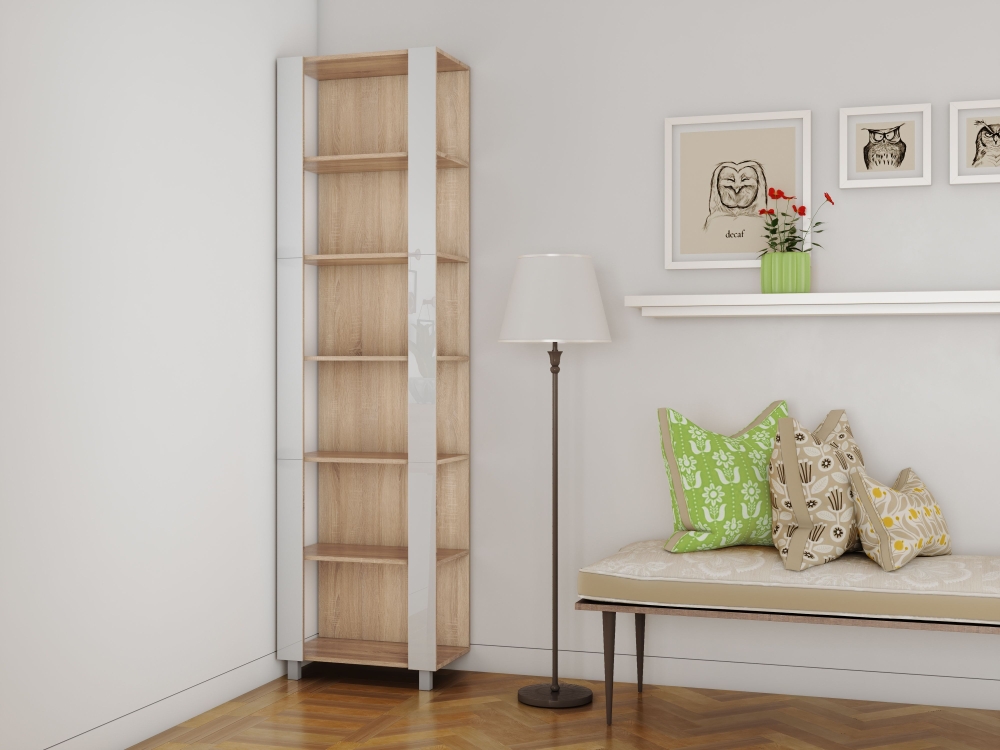 Стеллаж модульный Мебельная компания Е1 Универсальный Белое стекло 35х60х220, Сонома