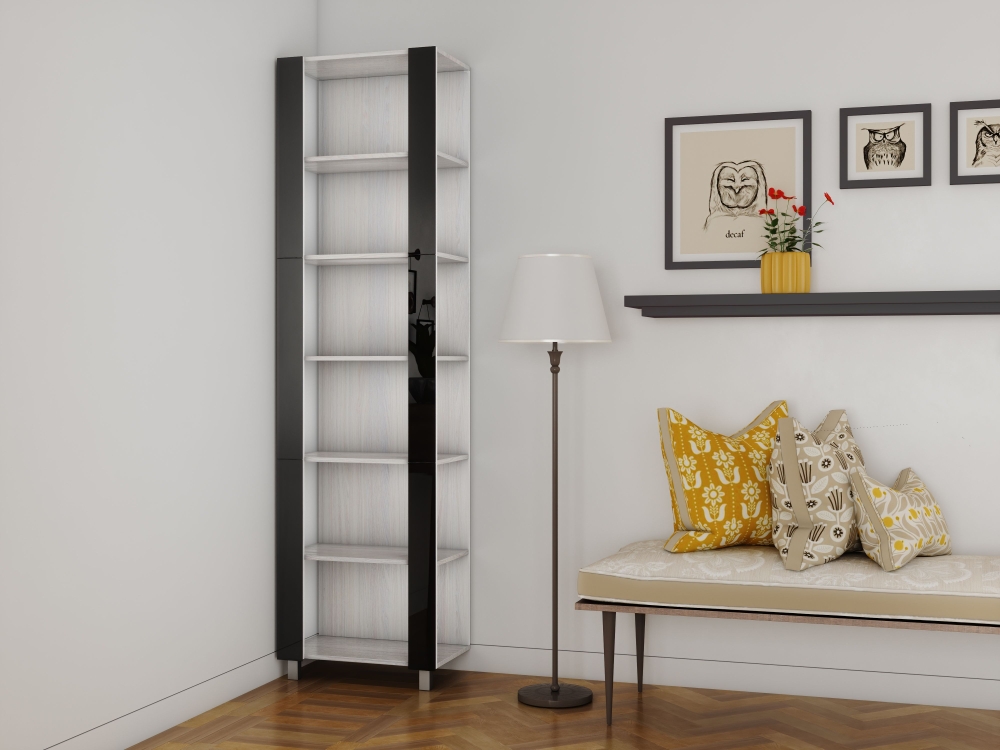 Стеллаж модульный Мебельная компания Е1 Универсальный Черное стекло 35х44х220, Ясень Анкор Светлый