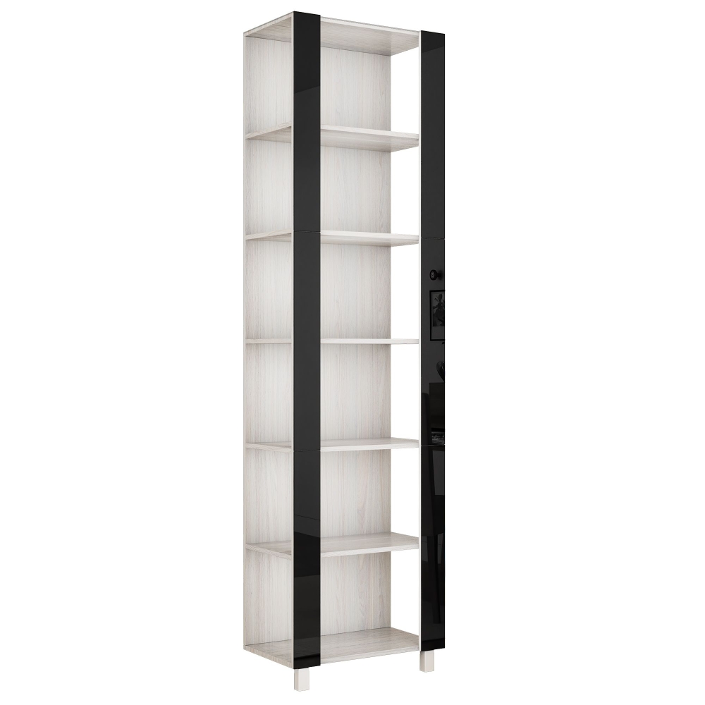 Стеллаж модульный Мебельная компания Е1 Универсальный Черное стекло 35х51х230, Ясень Анкор Светлый