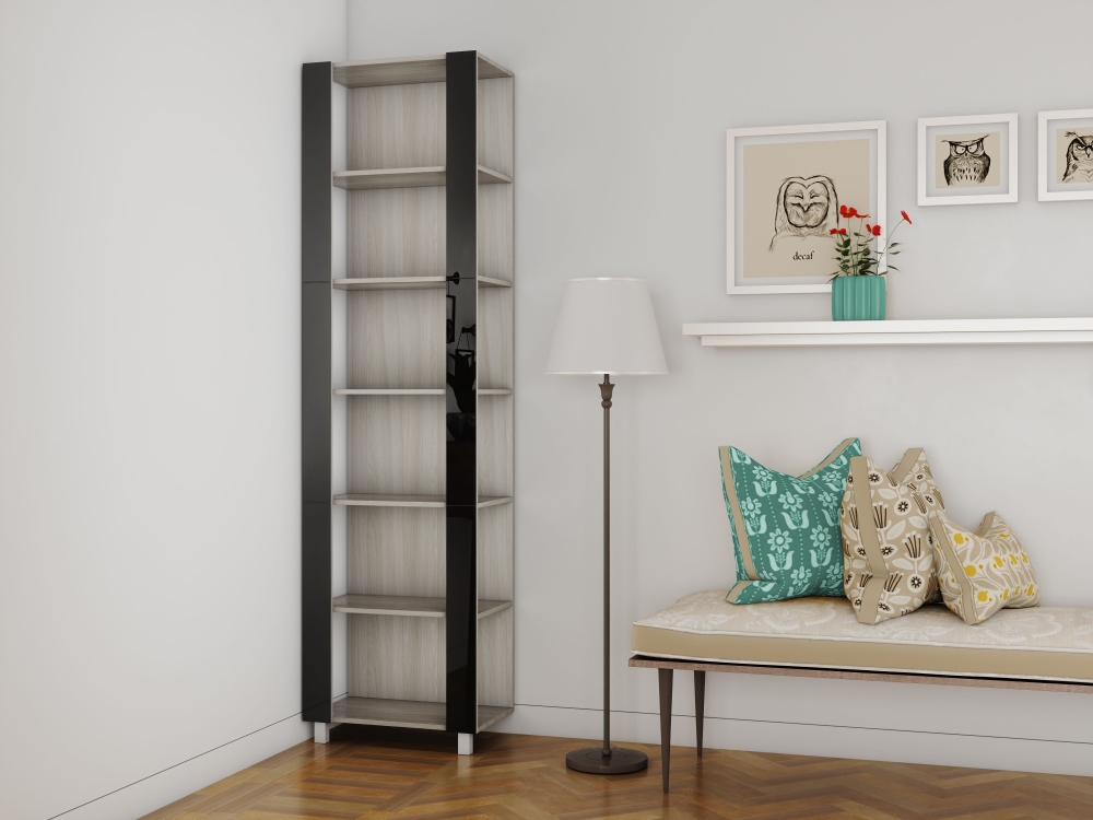 Стеллаж модульный Мебельная компания Е1 Универсальный Черное стекло 35х60х220, Ясень Шимо Светлый