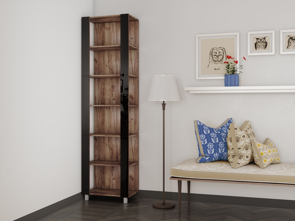 Стеллаж модульный Мебельная компания Е1 Универсальный Черное стекло 35х60х240, Дуб табачный